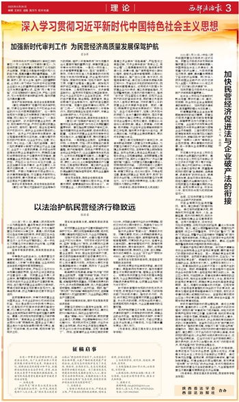 为进一步繁荣法学理论研究,推进法治实践,为广大法学法律工作者提供展示理论研究成果、传播法治文化、深耕法治实践的窗口和平台,本报理论版特邀全省法学专家、学者、政法系统业务骨干积极踊跃撰稿投稿,为谱写陕西高质量发展新篇章贡献更多的法治智慧。
