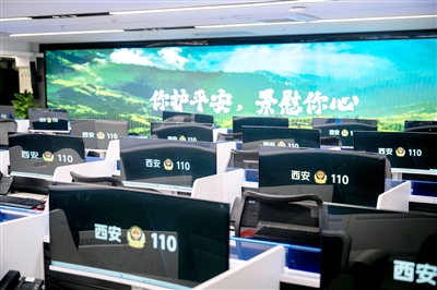 西安市公安局110报警服务台一角。